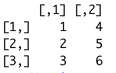 2. 3행 2열짜리 행렬이 만들어진다. (숫자가 세로로 채워짐)