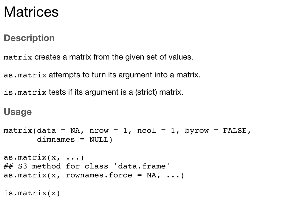 matrix[행, 열]로 표현하며, 행전체를 부르고 싶으면 matix[행, ] 열전체를 부르고 싶으면 matrix[, 열]로 나타내면 된다.